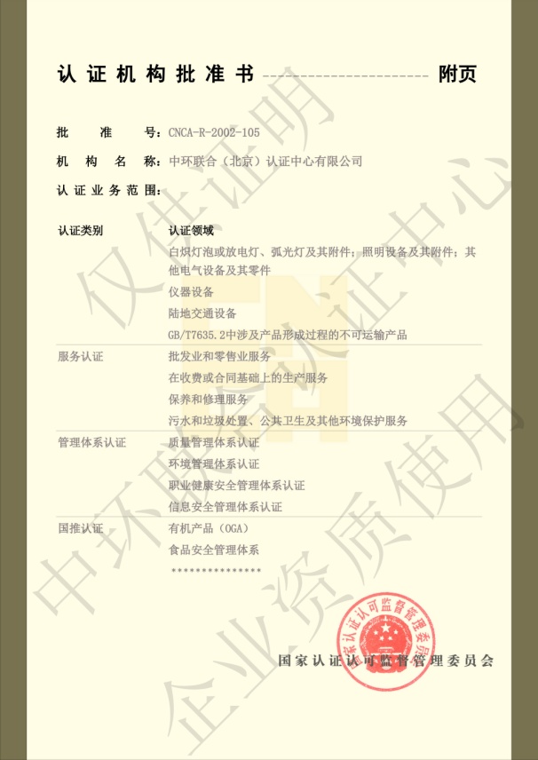 認證機構批準書附件