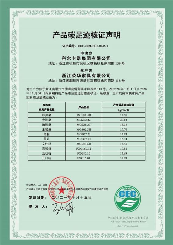 上一篇:浙江榮華家具有限公司碳足跡核證聲明-CEC-2021-PCF-0045-2-實(shí)木類(lèi)家具